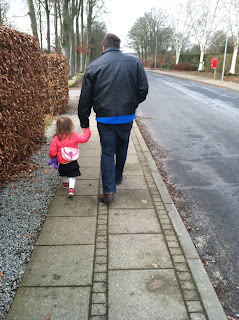 She loves walking to the folk school for our meals now, rather than riding in the stroller. It takes a bit longer, but she feels like such a big girl! In the last week or so, she has also gotten excited about wearing her purse when we go, which makes her look even more grown up. Hard to believe she will be two this week! If you ask her about her birthday, she starts singing the Danish birthday song and dancing around. She will really be excited when they sing for her later this week.